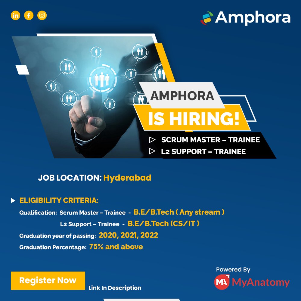 Myanatomy Integration On Twitter Amphora Is Hiring Register Https T Co Cd6zbi8qd9 Job Title Scrum Master Trainee And L2 Support Trainee Job Location Hyderabad Myanatomy Hyderabad Jobsinhyderabad Cplusplus Sdlc C Java Javascript